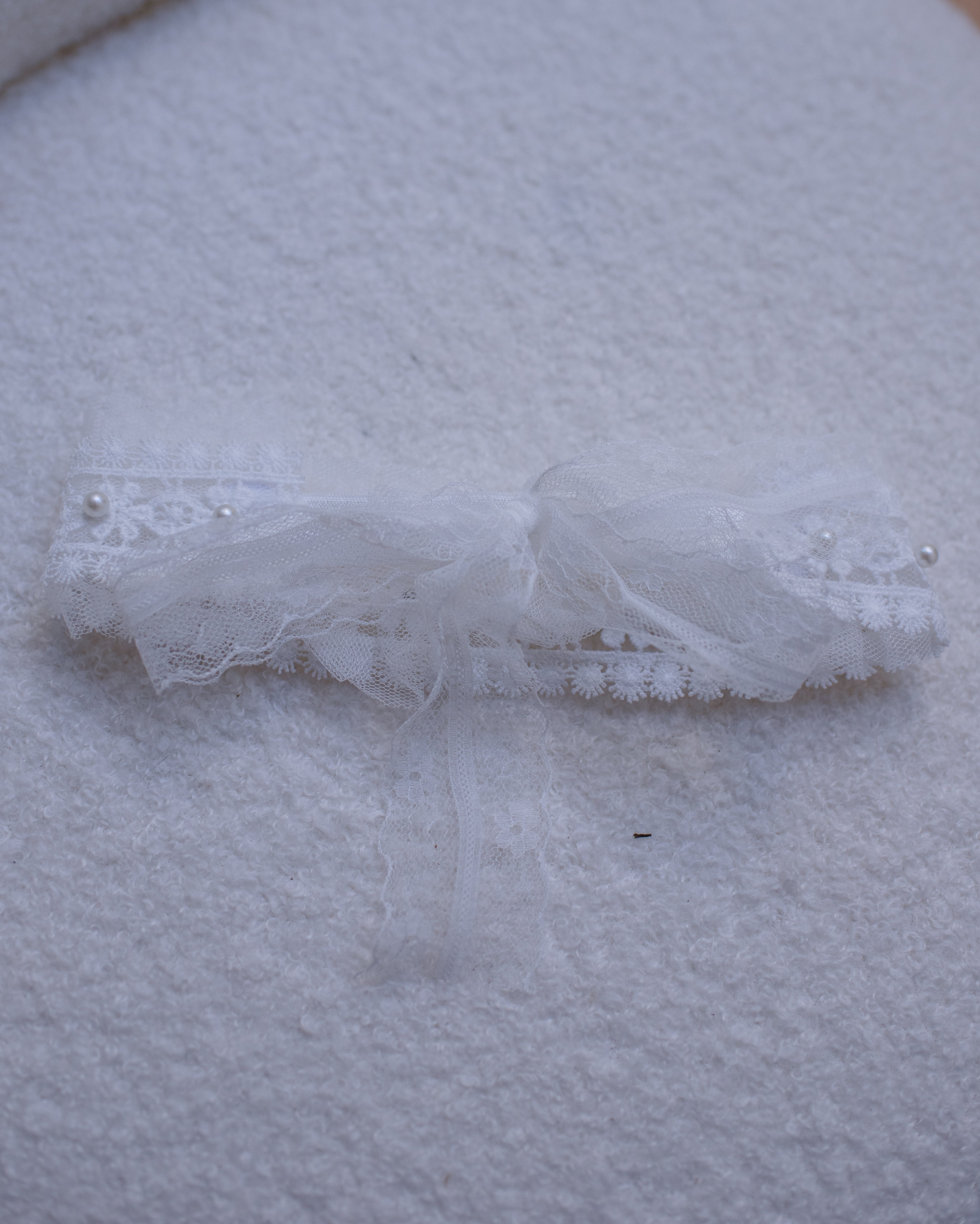 The hairband features an elegant bow, creating a timeless and sophisticated look.